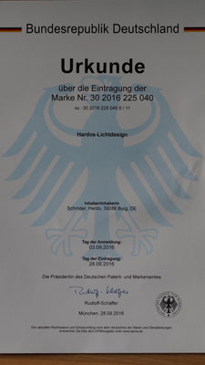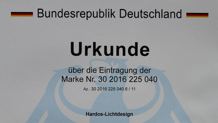Hardos-Lichtdesign ist seit 28.09.2016 eine Deutsche Marke.